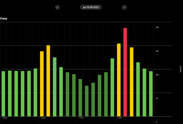 Díky našemu systému pak můžete elektřinu nakoupit v době kdy je nejlevnější a uložit ji do baterie a využít ji v době kdy je energie nejdražší a snížit v tuto dobu spotřebu energie na minimum. K tomu je však důležité mít také dostatečnou velikost baterie.